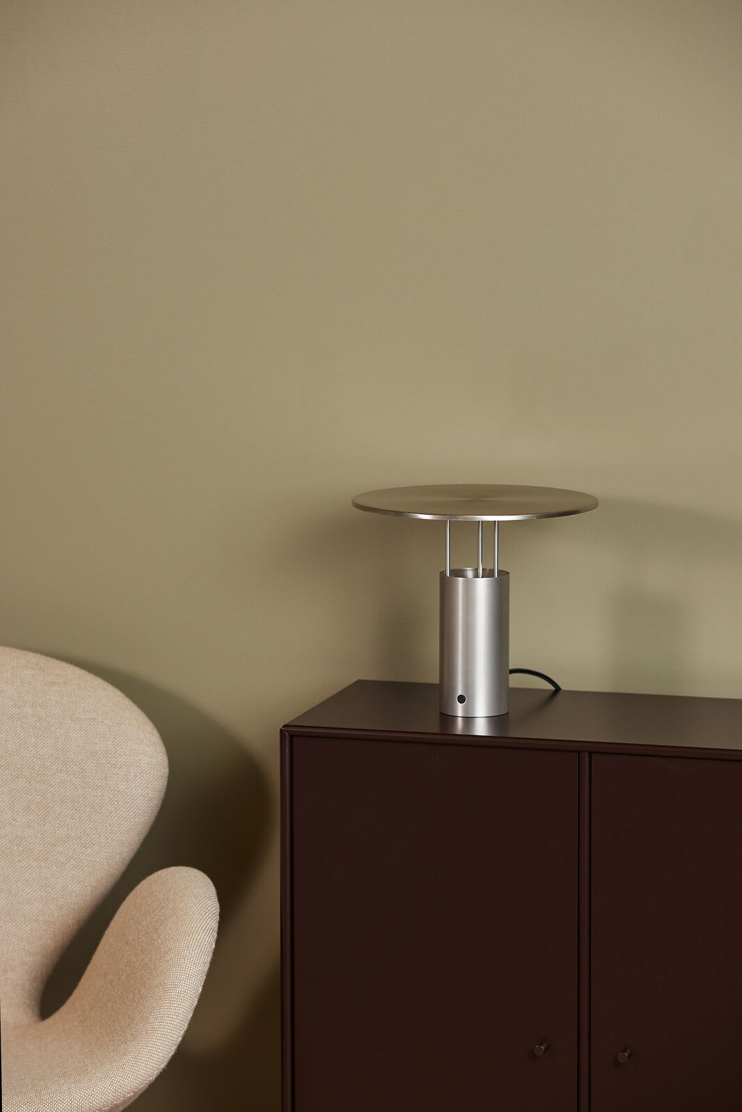 Oprindeligt blev Tempel designet i 1960’erne og udført i træ. I dag er lampen nænsomt nyfortolket i aluminium – et materiale, der både fremhæver dens skulpturelle udtryk og respekterer den oprindelige enkelhed.